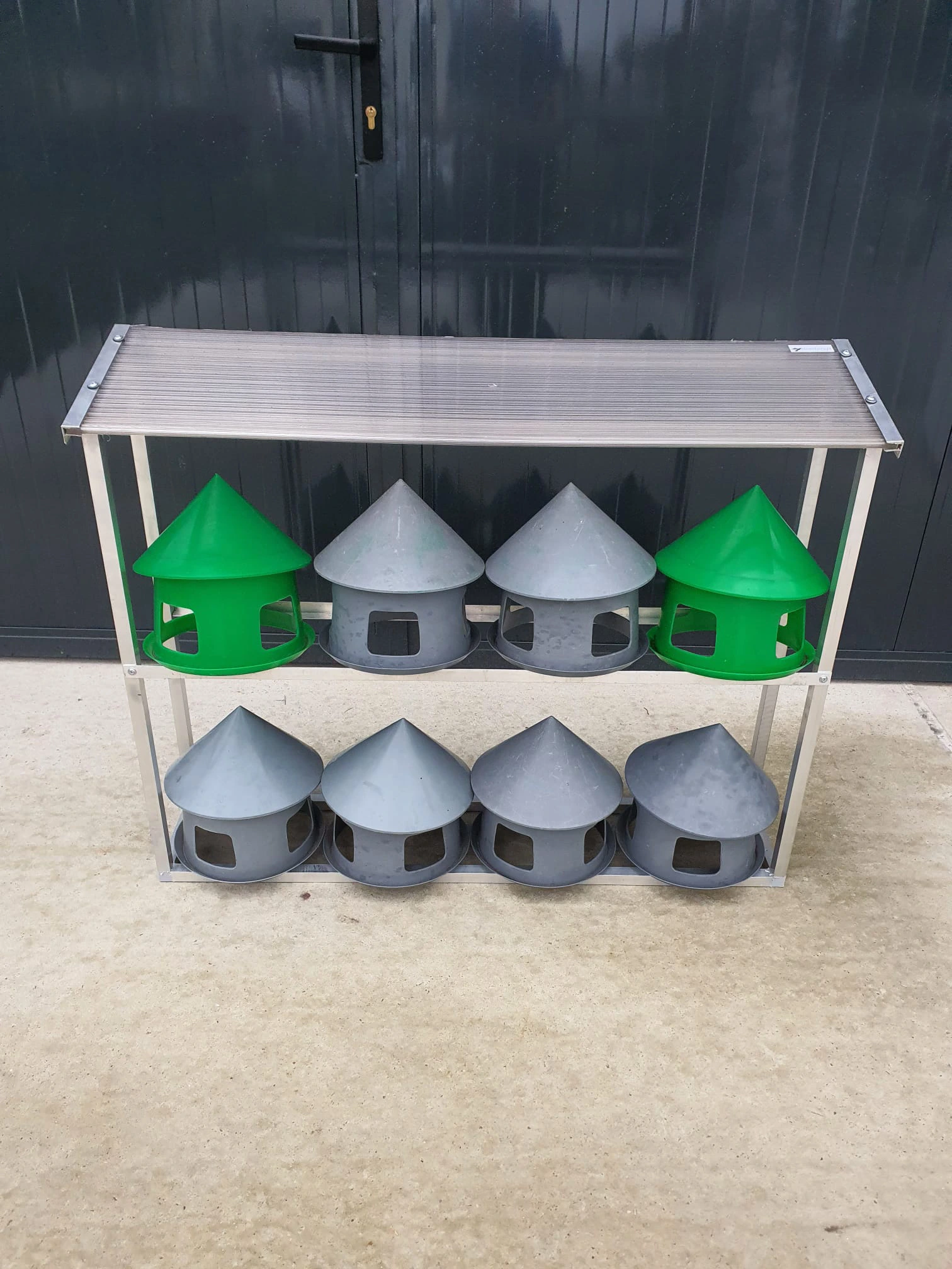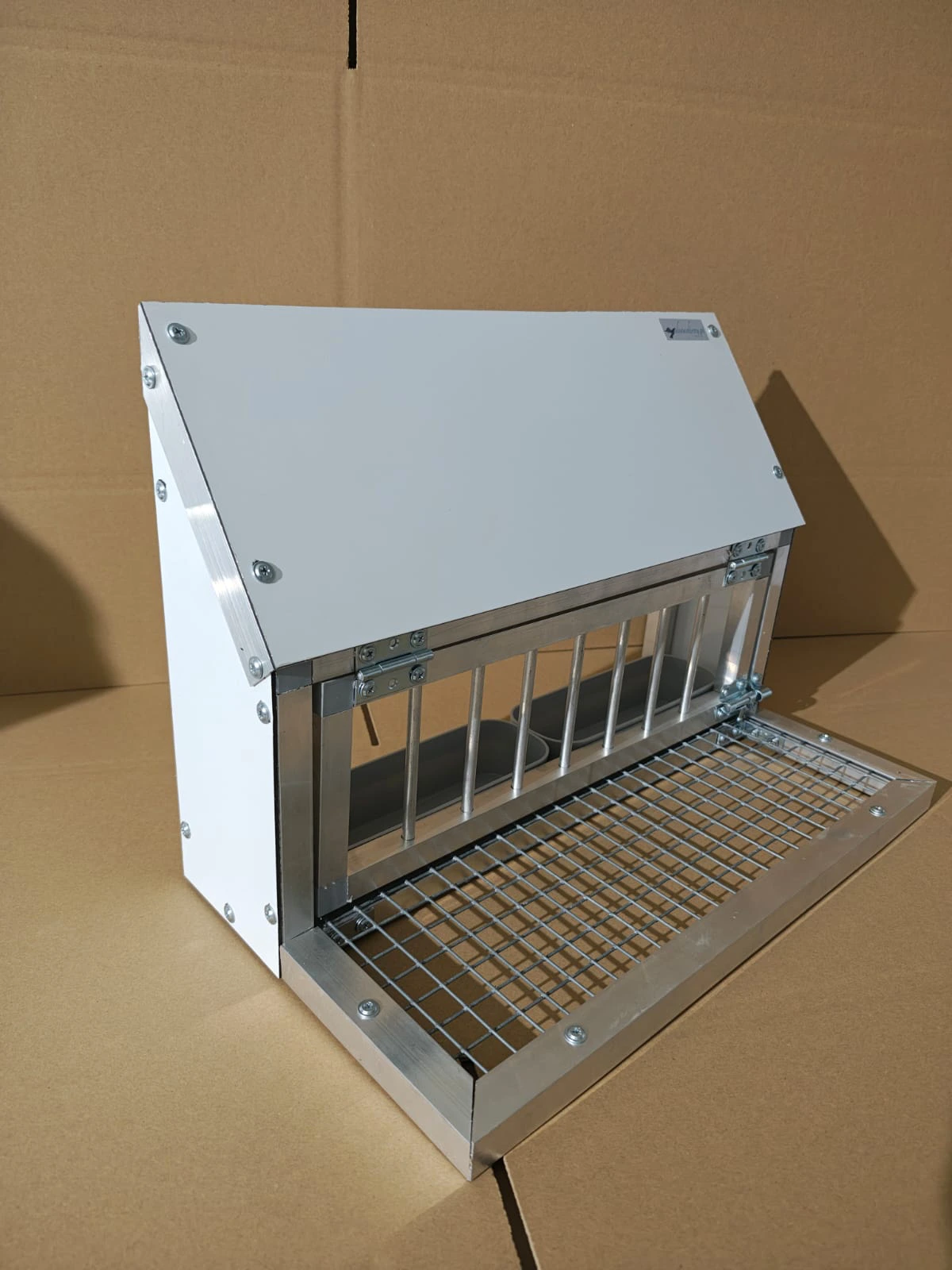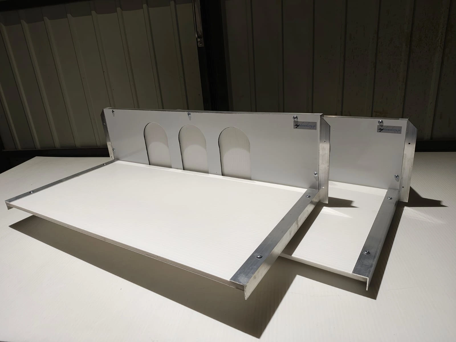 Indywidualne akcesoria wykonane z aluminium w celu usprawnienia obsługi hodowli gołębi, typu karmidła, podstawki, kosze, suszarki, ramki wlotowe.