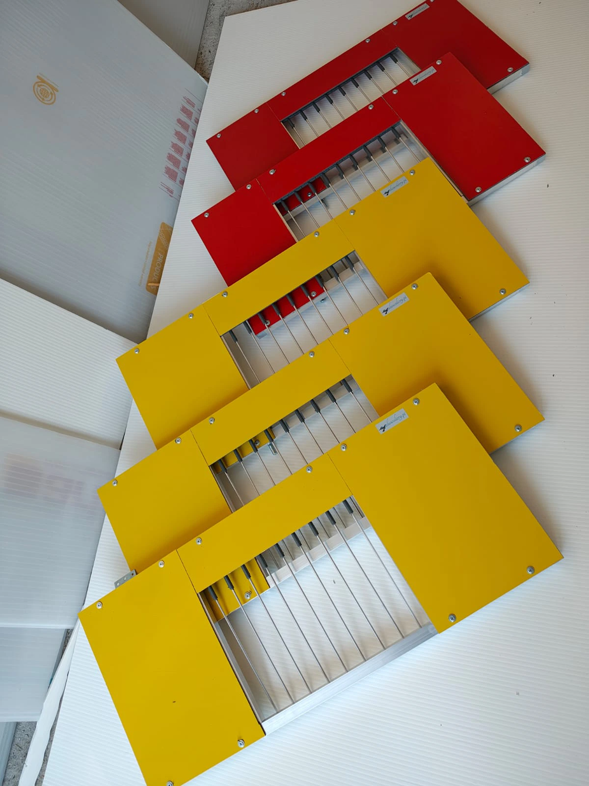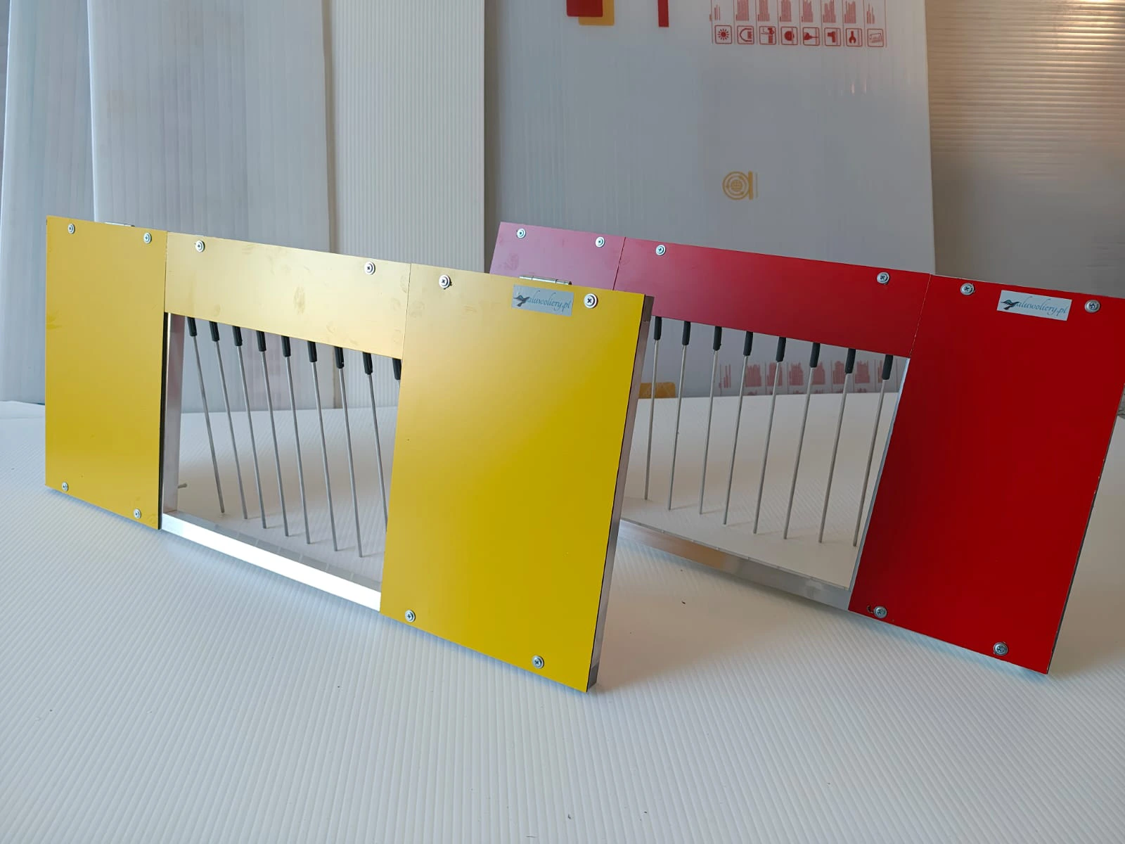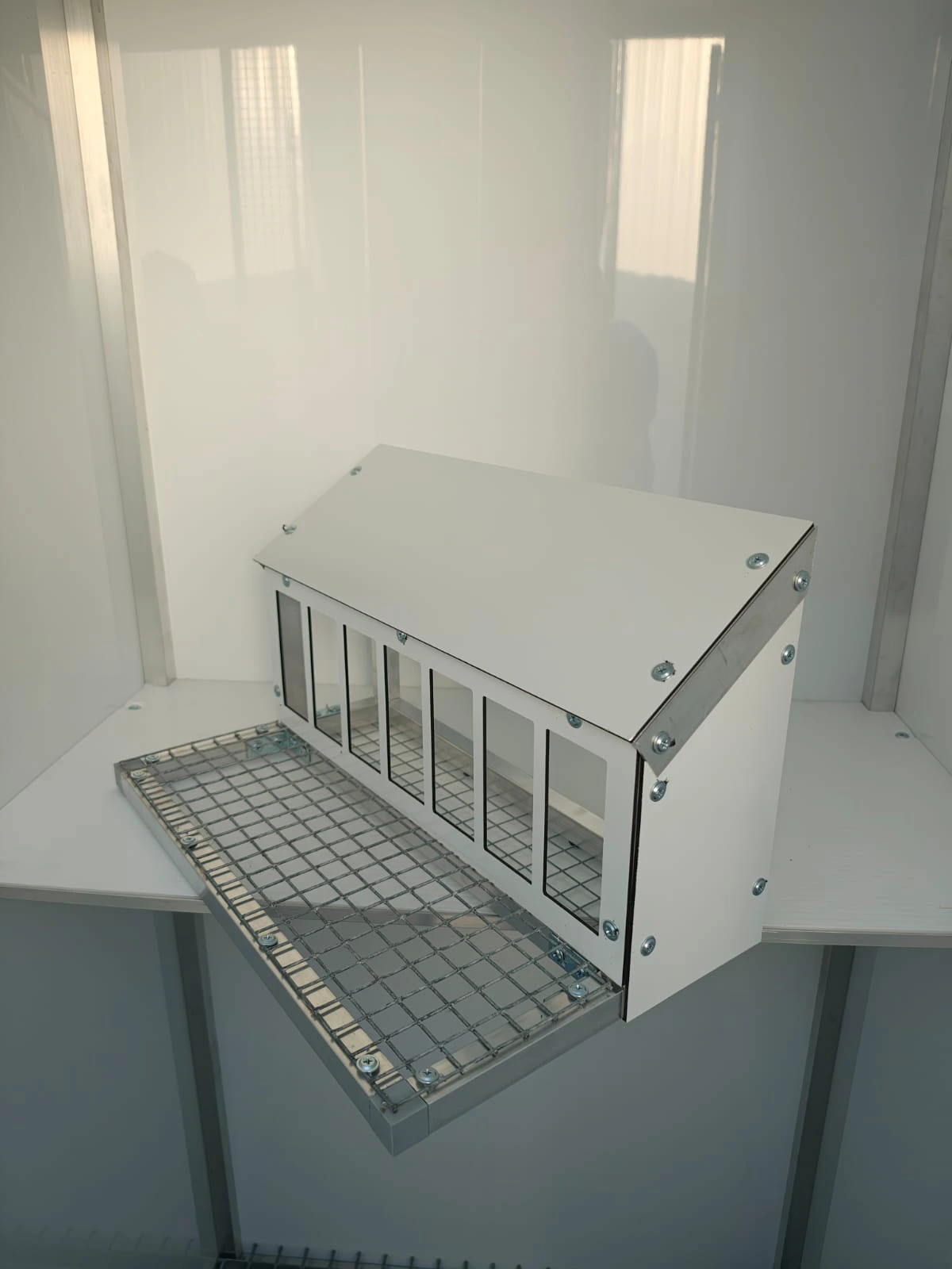 Indywidualne akcesoria wykonane z aluminium w celu usprawnienia obsługi hodowli gołębi, typu karmidła, podstawki, kosze, suszarki, ramki wlotowe.