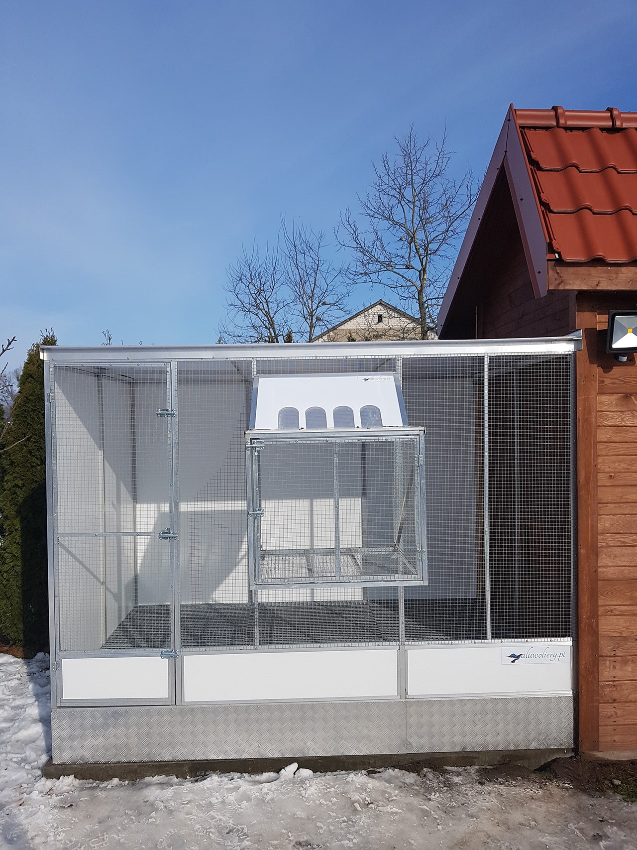 Można go dostawić do gołębnika, do ściany budynku, a po odpowiednim zamocowaniu również jako konstrukcja na wolnym powietrzu. Można go swobodnie dostosować do potrzeb naszego klienta. W zależności od przyszłego zastosowania, możemy w nim zamontować siodełka lub grzędy, wtedy jest to odpowiednie miejsce dla wdów i samiczek w sezonie lotów. Montując w nim cele lęgowe to szybki sposób na np. tymczasowe powiększenie gołębnika rozpłodowego. Oczywiście może się w nim znaleźć również regał dla młodych i gołębnik młodzieży gotowy! 🙂