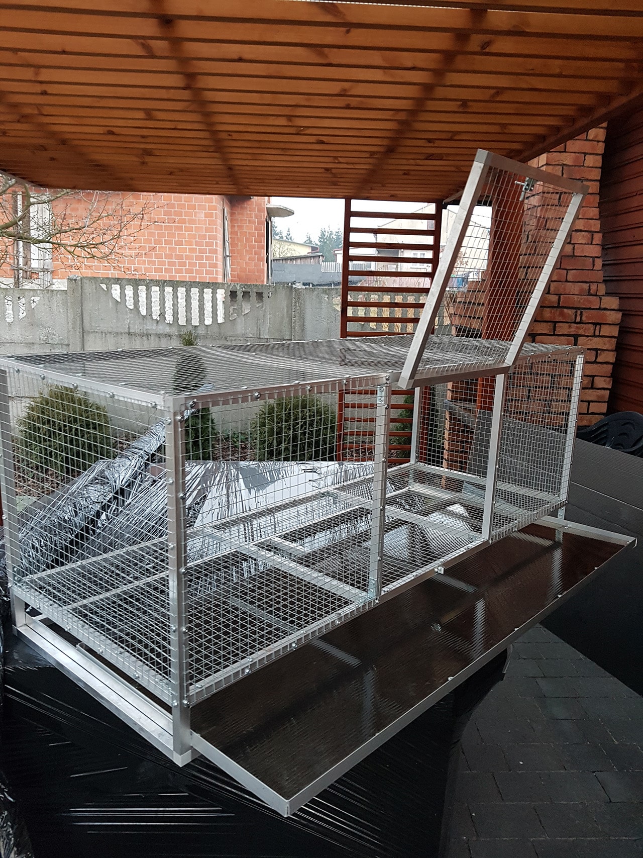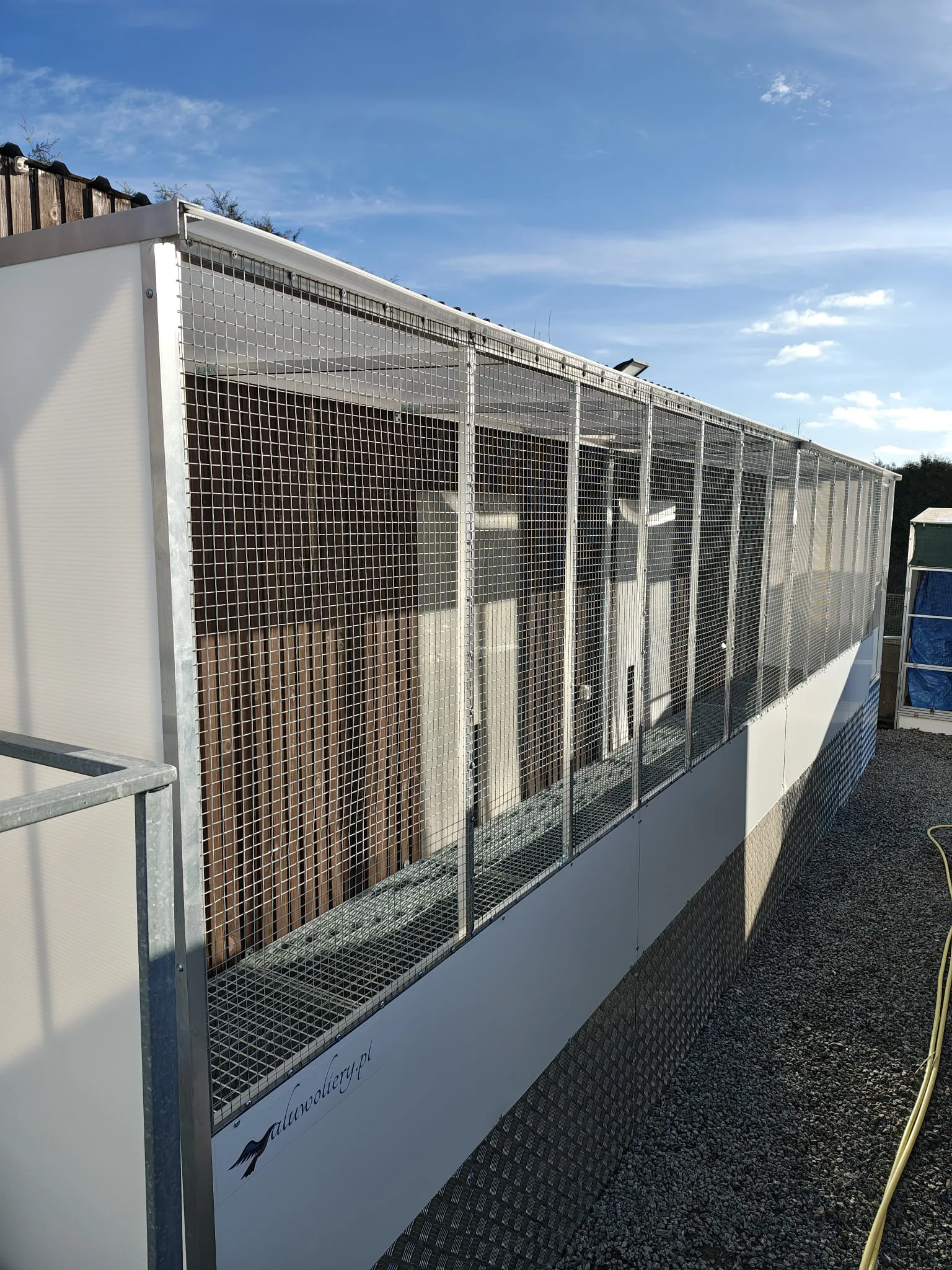 Wykonujemy je z profili aluminiowych o różnych wielkościach, od profilu 20×20 przez 25×25, 30×30 a nawet 40×40, w zależności od wielkości i niezbędnej wytrzymałości danego produktu finalnego. Zastosowana siatka w naszych produktach to siatka ocynkowana ogniowo odporna na warunki atmosferyczne o różnej wielkości oczek. Nasze woliery możemy wieszać, stawiać na ziemi, montować na podwyższeniu zakładając wewnątrz niezbędny ruszt do swobodnego poruszania się w niej. Na prośbę klienta montujemy zadaszenia i obudowy z poliwęglanów lub polipropylenu białego, w zależności od potrzeb.